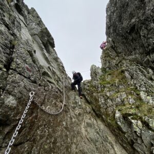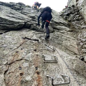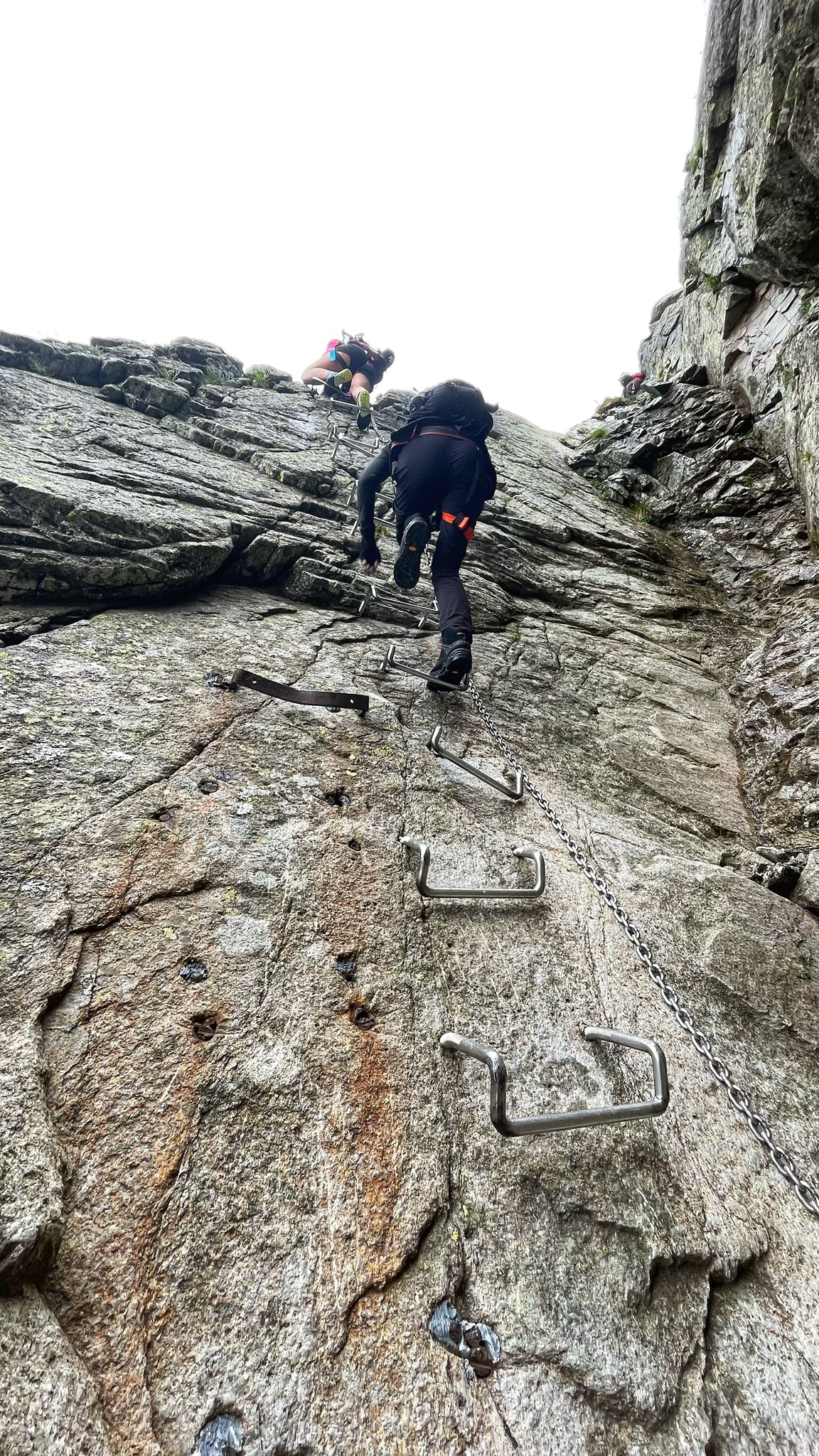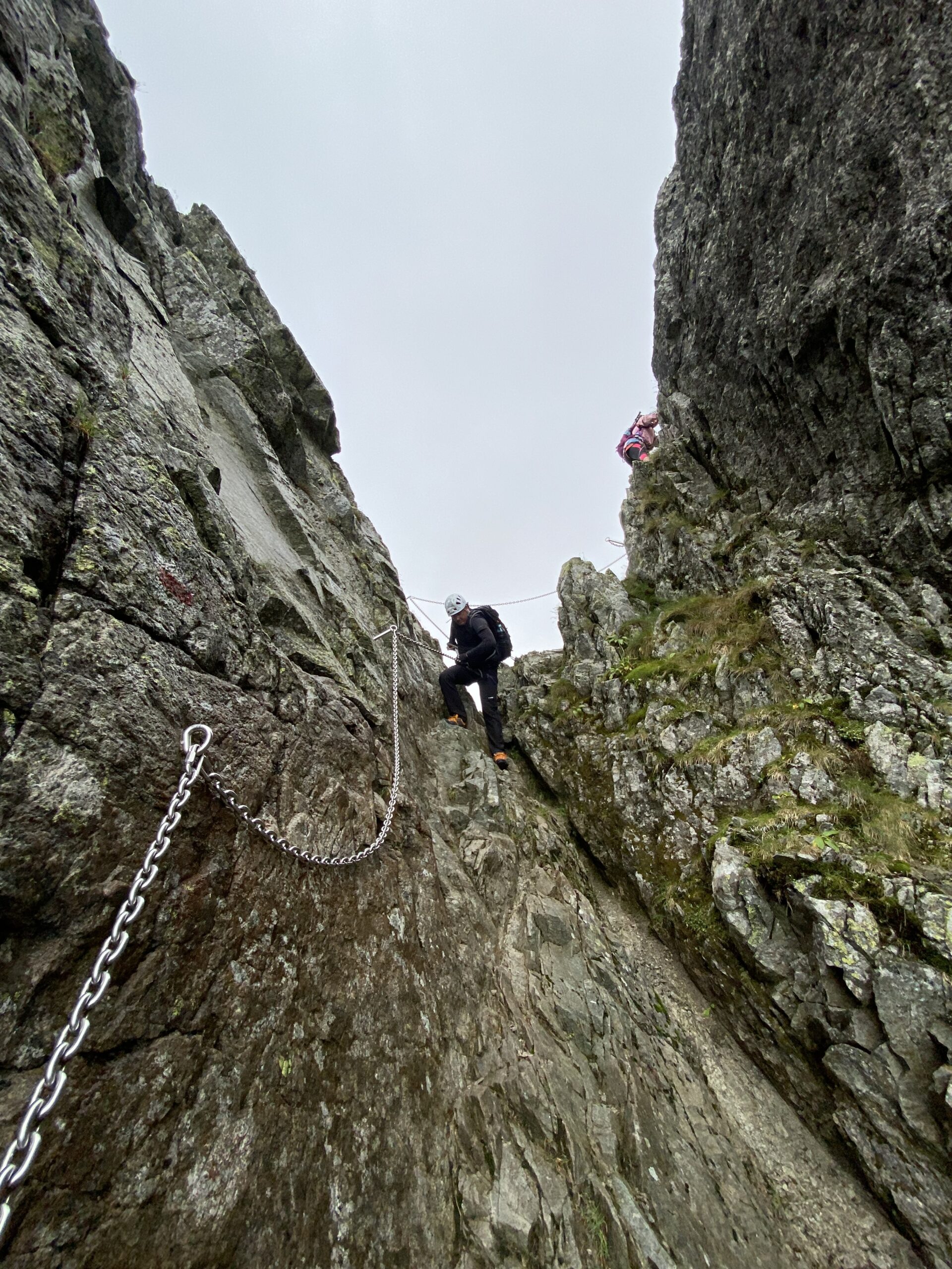 Przechodzimy przez eksponowane fragmenty z ubezpieczeniami w postaci łańcuchów, klamer oraz drabinki.