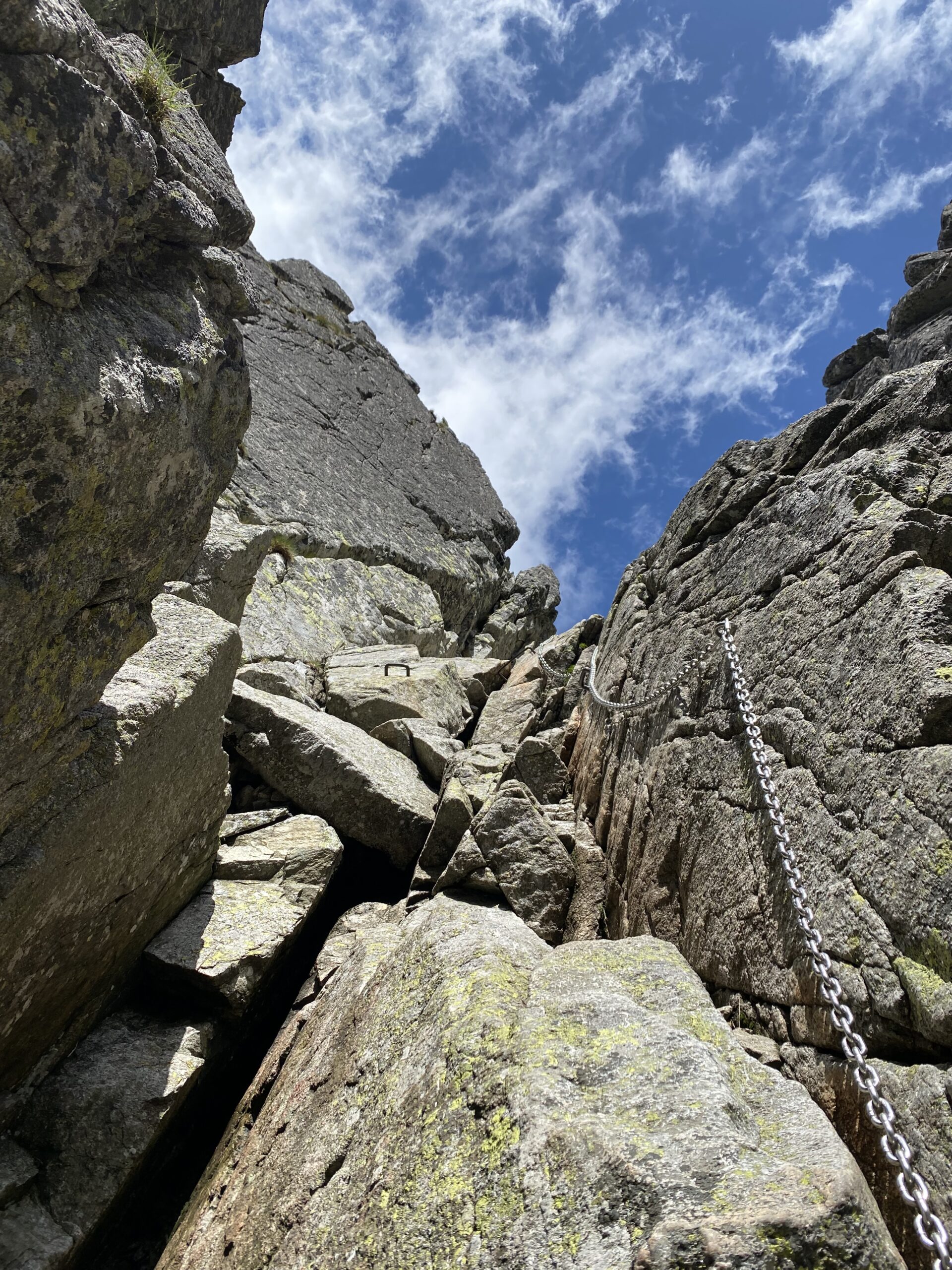 Przechodzimy przez odcinek ubezpieczony łańcuchami, klamrami i drabinką zdobywając Kozi Wierch i kolejne odcinki Orlej Perci, aż do Zadniego Granatu.