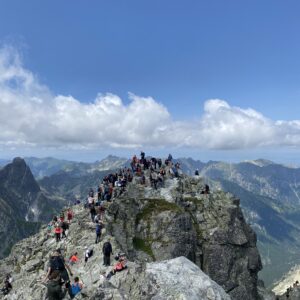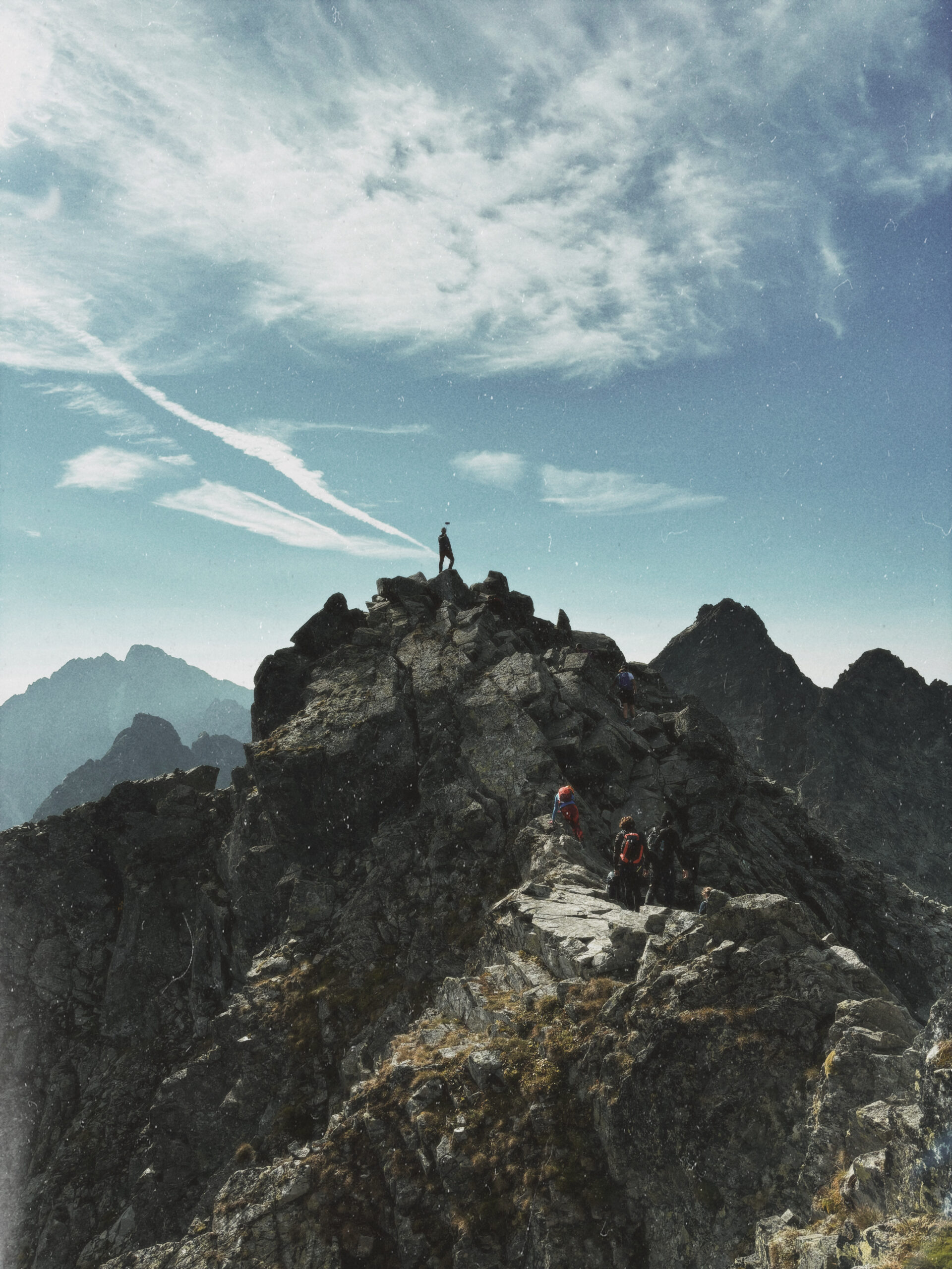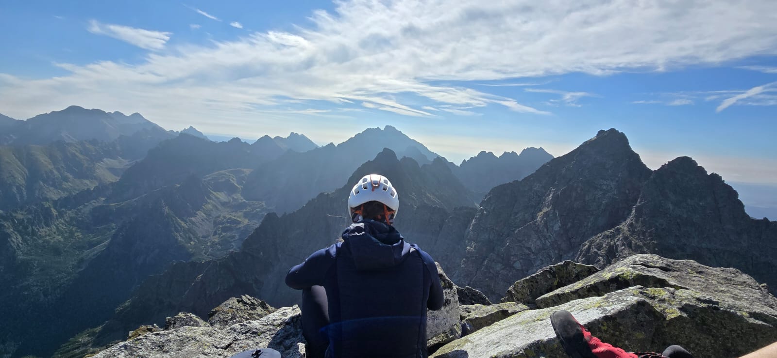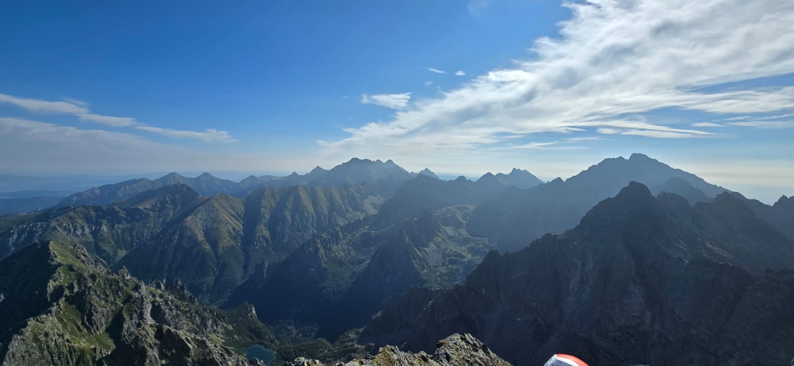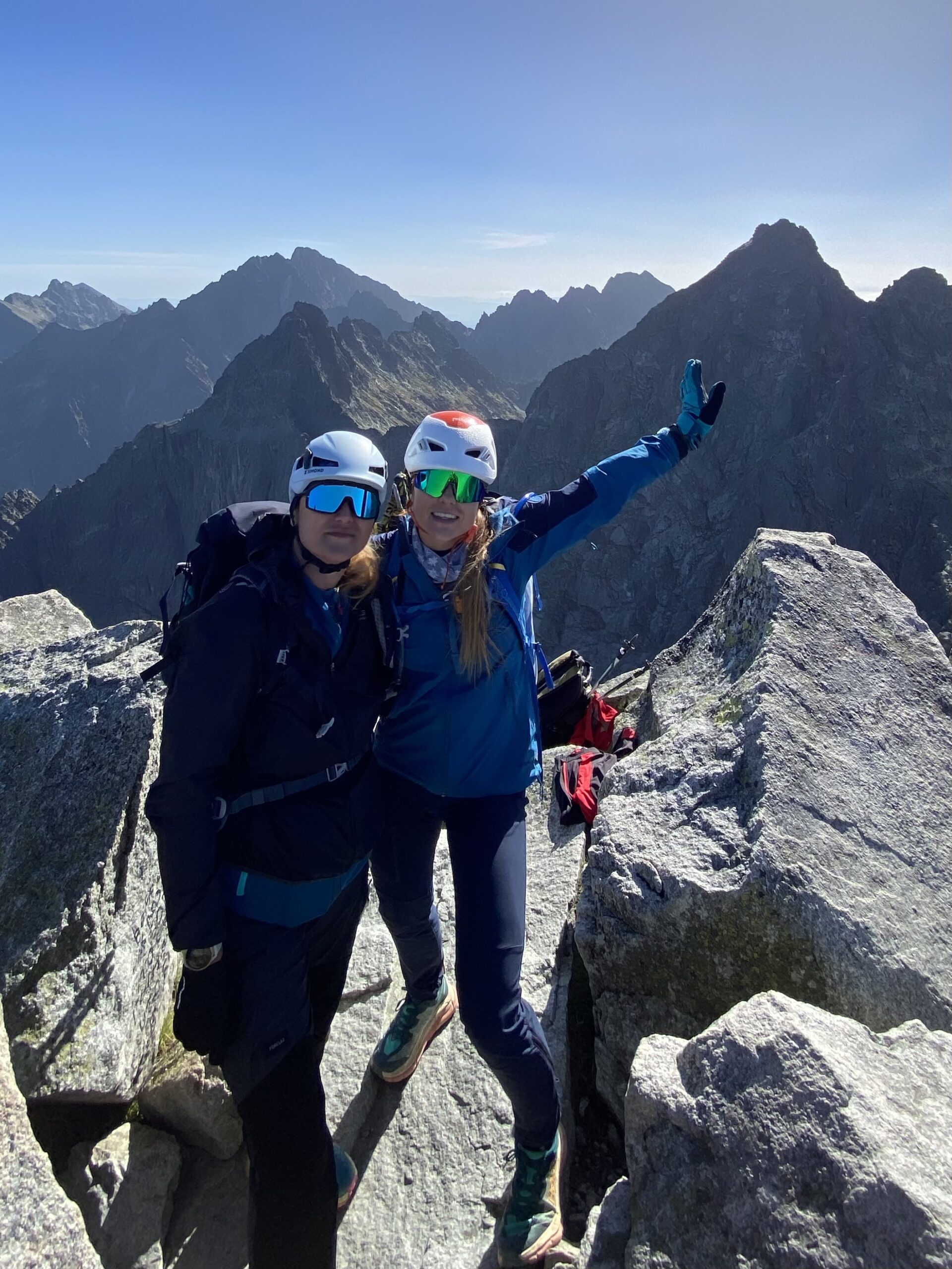 Osiągamy Rysy (2499 m n.p.m.), skąd rozciąga się spektakularny widok na Tatry polskie i słowackie.
